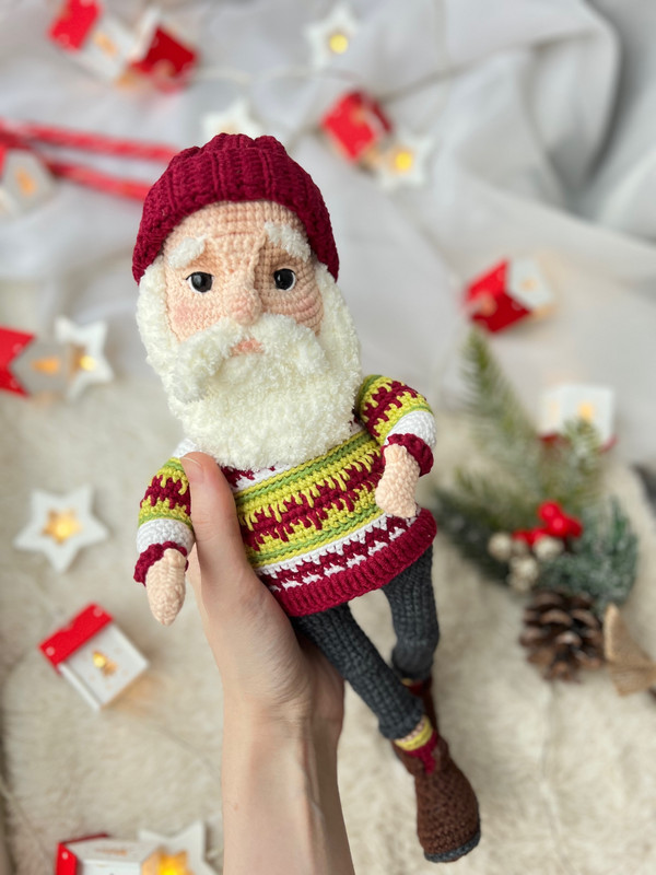 вязанию очаровательного модного Санты.